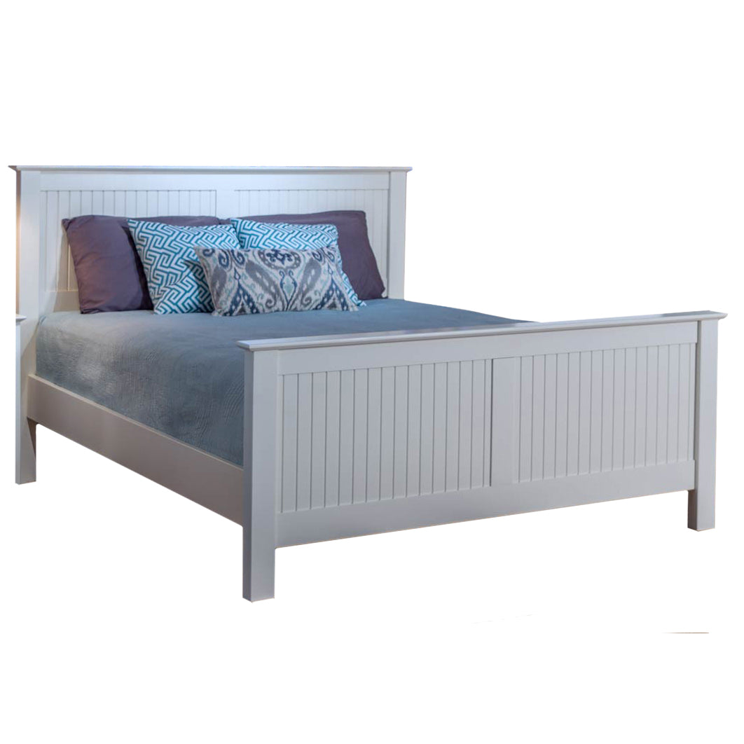 Introducing our Coastal-Inspired High Footboard Panel Bed, designed to bring comfort and style to your bedroom. This bed features a beautifully hand-crafted headboard and footboard with charming hand-grooved details. Painted in a soothing Cottage White color reminiscent of lakeside retreats, this sturdy bed is both stylish and built to last, making it a perfect addition to your relaxing getaway.