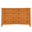 Discover the impressive storage capacity of the Heritage eight-drawer dresser, a perfect blend of functionality and elegance. This stunning piece features exquisite walnut accents on the drawer hardware, adding a touch of warmth and sophistication to any space.