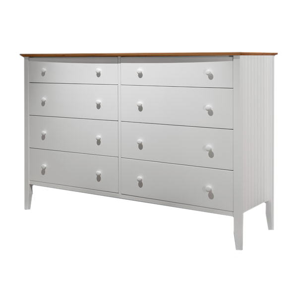 Introducing the Coastal Eight-Drawer Dresser, a stunning piece that beautifully combines coastal charm with exceptional craftsmanship. This dresser features a solid cherry top and eight spacious drawers, providing ample storage. Its outstanding design includes hand-grooved sides and a pristine, hand-applied white finish, all of which evoke a sense of sophisticated tranquility reminiscent of the ocean.