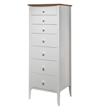 Introducing the Coastal Seven-Drawer Lingerie Chest, a beautiful piece that combines coastal charm with a unique mission and craftsmanship style. Crafted with a solid cherry top, this chic and luxurious chest features seven drawers designed for optimal organization. Its exceptional craftsmanship includes hand-grooved sides and a pristine white finish, creating an elegant seaside warmth.