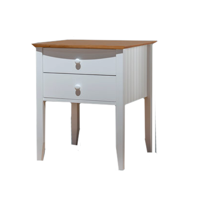 Discover our Coastal Two-Drawer Nightstand, a stunning piece that combines seaside elegance with a unique mission and craftsman style. This nightstand features a beautifully crafted solid cherry top and two convenient drawers for storing personal items. It is elegantly finished with hand-grooved sides and a crisp white finish, giving the entire piece a refreshing, coastal-inspired look.
