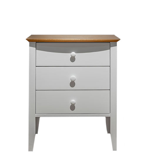 Presenting the Coastal Three-Drawer Nightstand, a remarkable piece that seamlessly combines coastal elegance with a distinctive mission and craftsman style. This nightstand is constructed with a solid cherry top and features three functional drawers for organizing personal items. It is adorned with hand-grooved sides and a crisp white finish, providing the entire piece with a refreshing, seaside-inspired aesthetic.