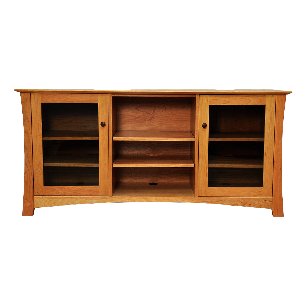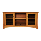 Discover the impressive craftsmanship of our 60" Mid-Century Modern television console, designed to serve as a striking centerpiece in your living space. This console is meticulously constructed from solid wood, showcasing rich finishes that highlight the natural beauty of the wood grain. The console features slightly tinted tempered glass doors, adding a refined touch while ensuring durability and safety for everyday use.