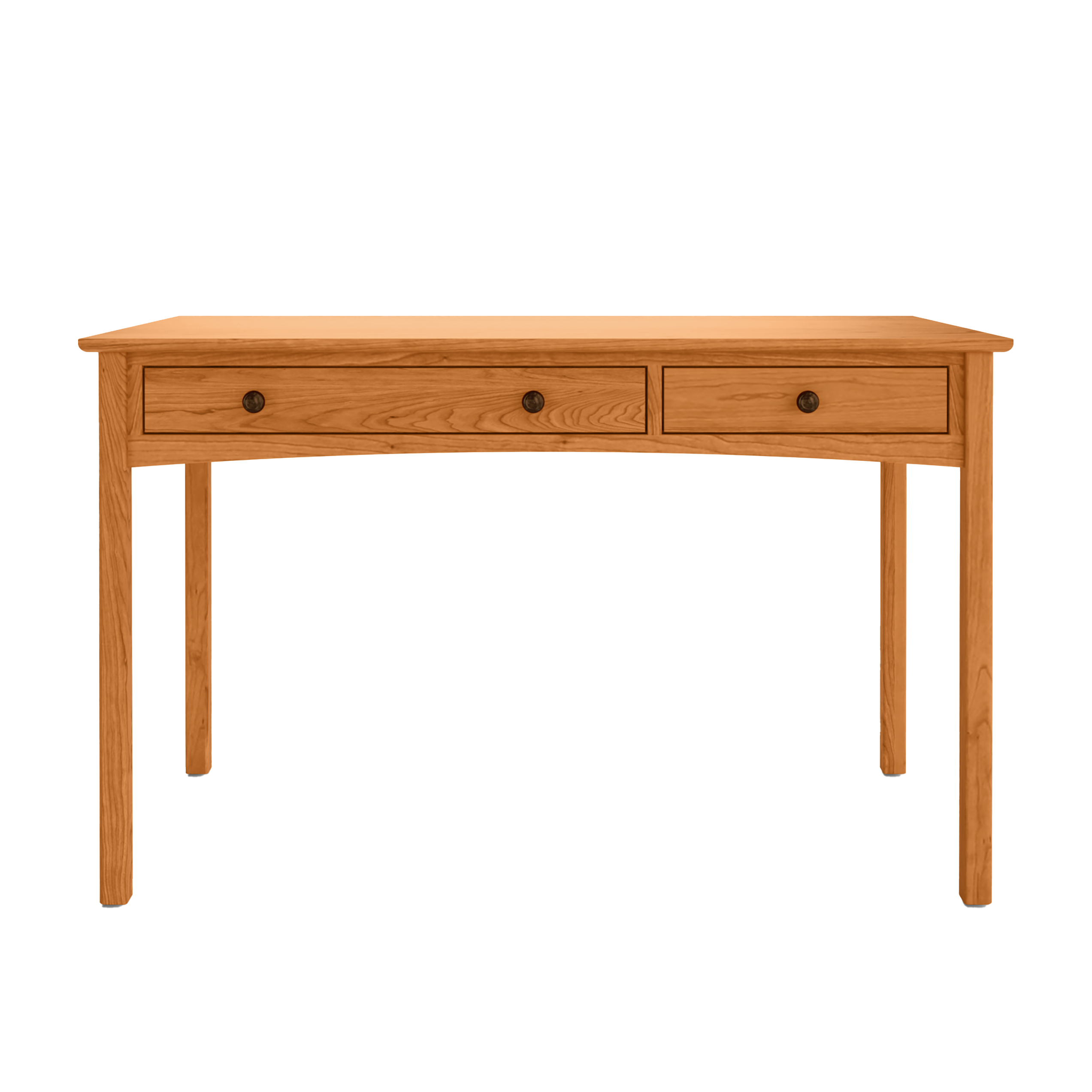 Explore the handcrafted two-drawer computer desk, thoughtfully designed for aesthetics and functionality. Its sturdy construction guarantees durability, while its sleek, straight lines make it an ideal addition to any workspace. The drawers offer convenient storage for your essentials, helping to keep your desk neat and organized.
