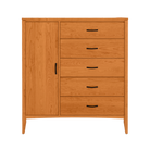 The Weybridge Armoire is a well-crafted piece of furniture made from high-quality solid wood, ensuring both durability and longevity. It includes five spacious drawers that utilize smooth, undermount soft-close gliding mechanisms for easy and quiet operation, making it ideal for organizing everyday essentials. Inside, the armoire offers two adjustable shelves and a fixed shelf at the base, providing ample space for storage and organization.