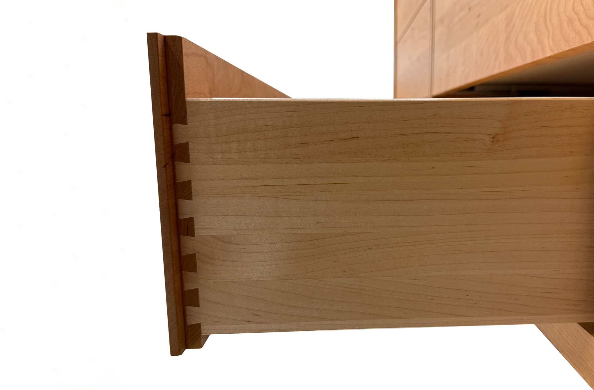 - Drawer joinery is crafted precisely using finger (English) dovetail joints