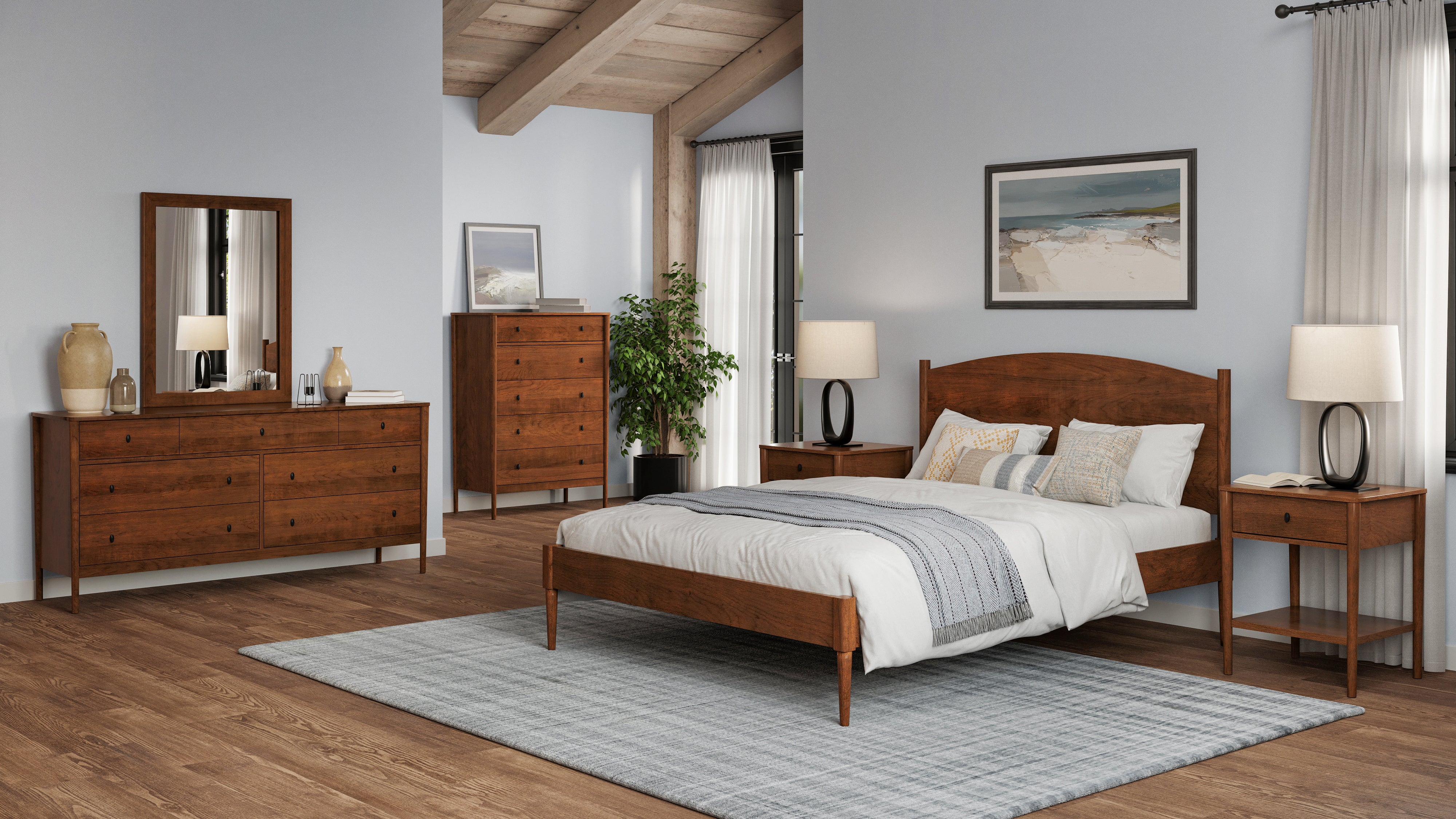 The Allen Collection showcases beautifully crafted solid wood furniture, exuding elegance with its clean and sleek lines. Each piece is designed to enhance the aesthetic of your bedroom while ensuring lasting quality and durability. This mid-century modern Vermont furniture is built with expert craftsmanship and made to withstand the test of time, becoming a cherished part of your home for generations to come.