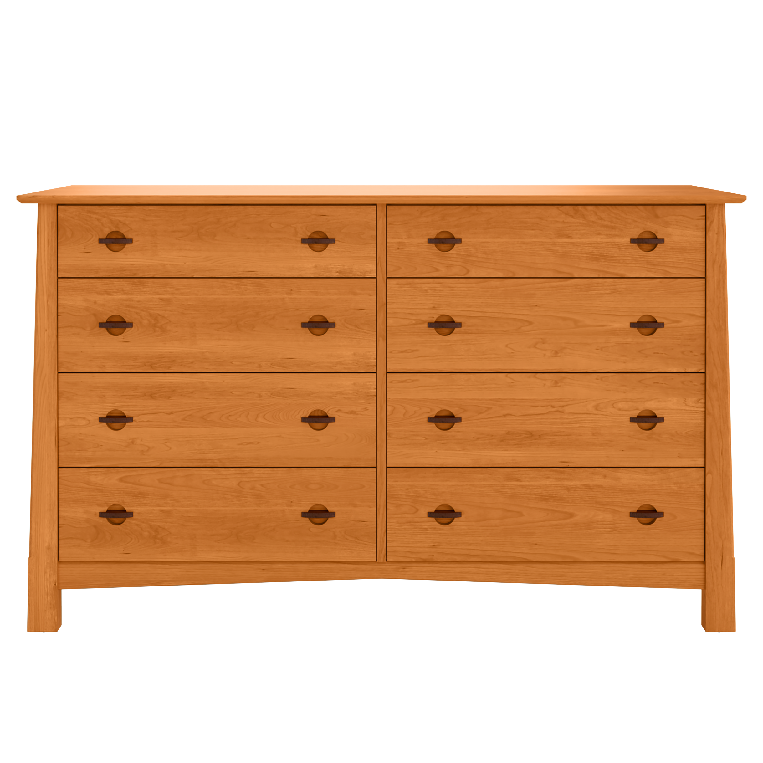 Discover the impressive storage capacity of the Heritage eight-drawer dresser, a perfect blend of functionality and elegance. This stunning piece features exquisite walnut accents on the drawer hardware, adding a touch of warmth and sophistication to any space.