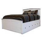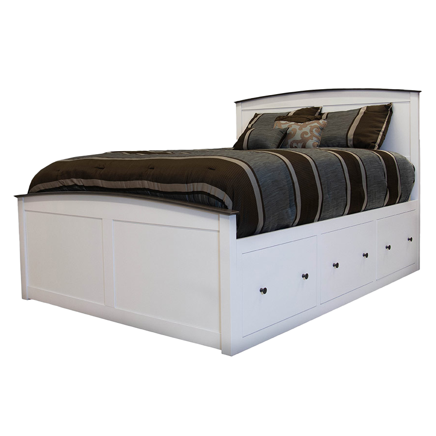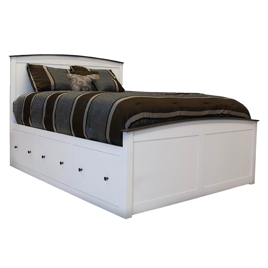 The Shoreline Captains Panel Bed 3x3 is expertly handcrafted from solid wood and provides an excellent storage solution. It offers the option of having three drawers on each side, ensuring ample storage space. This beautifully designed piece features a hand-painted finish in a calming coastal white, which is beautifully complemented by luxurious graystone-stained top caps.
