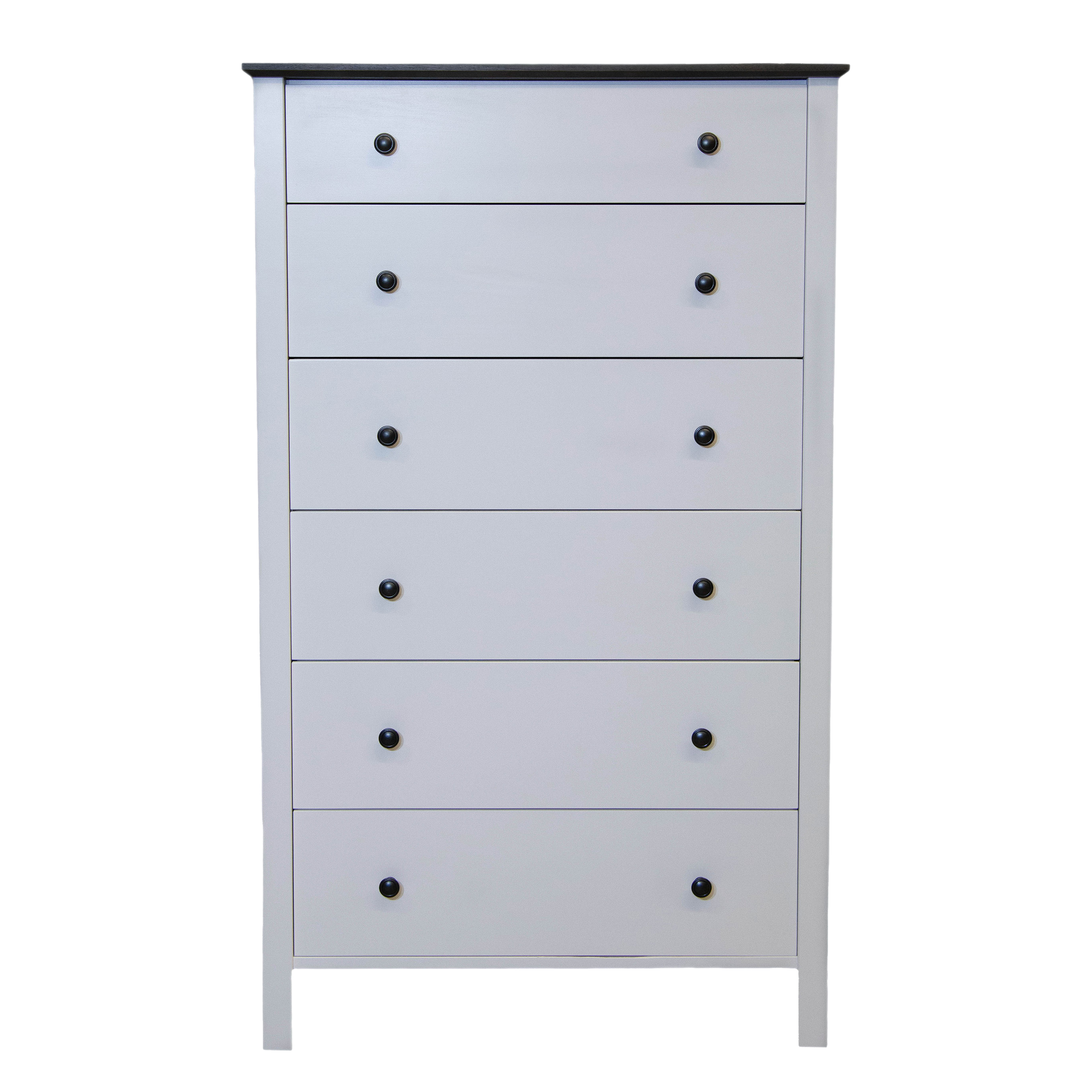 The Shoreline Six Drawer Chest seamlessly blends style and functionality, making it a perfect addition to any home. Meticulously crafted from solid wood, this exquisite piece is hand-painted in a coastal white, exuding timeless elegance. The sophisticated graystone stain top accents lend a touch of depth and refinement, enhancing its overall aesthetic.
